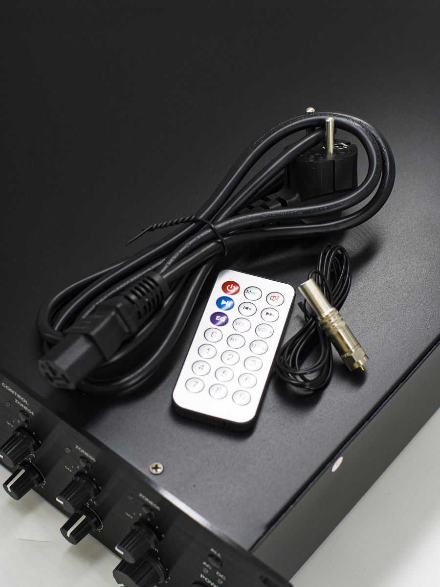 Мощность усилителя, RMS/пик: 500 Вт Входы: 4 Mic, 3 Aux Выходы: 70V/100V/4-16ohm Размер (ШхВхГ): 484×88х405 мм Вес: 14,5 кг Дополнительно: Mp3, SD, USB, BT, FM тюнер, 6 зон аттенюатор