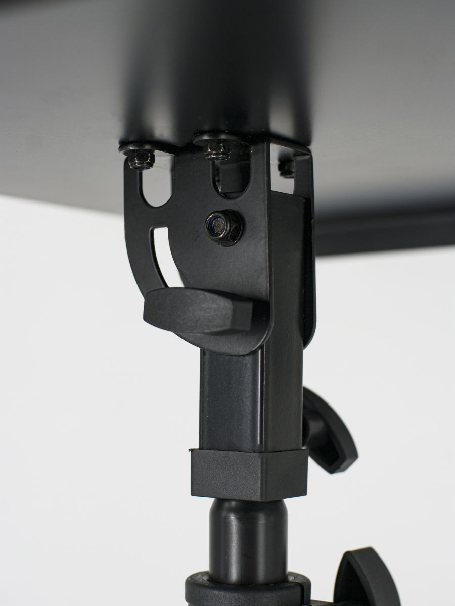 Lux Sound RS100 представляет собой надежную стойку для ноутбука, микшерного пульта, специально разработанную для работы диджеев. Она оснащена прочным регулируемым штативом и столом. Конструкция обеспечивает максимальный комфорт при длительных выступлениях и студийных сессиях. Приобретая Lux Sound RS100, вы получаете качественное оборудование, которое станет незаменимым помощником в вашей творческой деятельности.