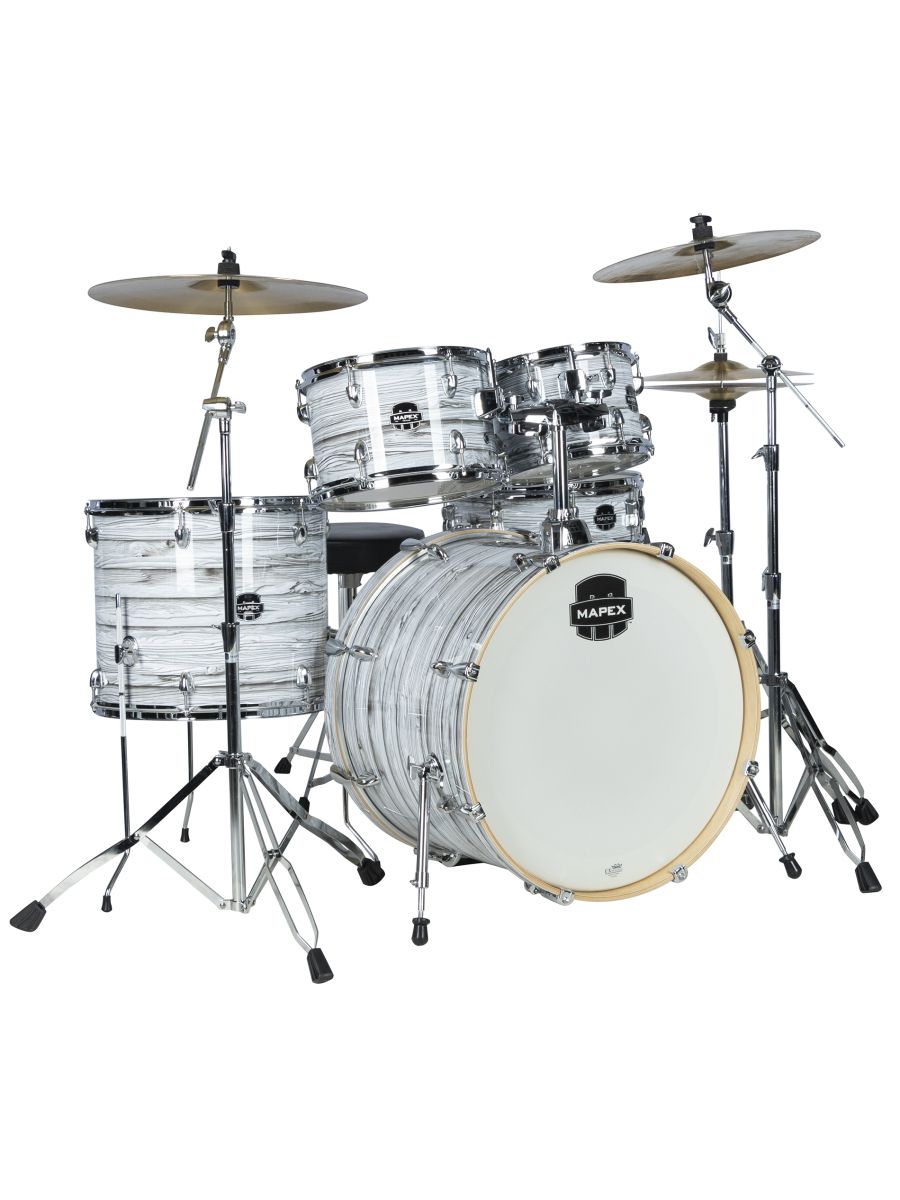 Mapex LTVE5295FTCFI Ударная установка из 5-ти барабанов, Venus series, BD2216, TT1007, TT1208, FT1614, SN1450, TH652, педаль P410, стойки: S400, H410, B400*2, стул T400, тарелки 14"HIHAT + 16"CRASH + 18"CRASH RIDE, цвет White Marblewood