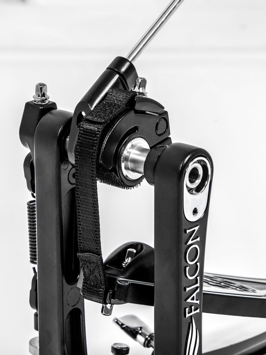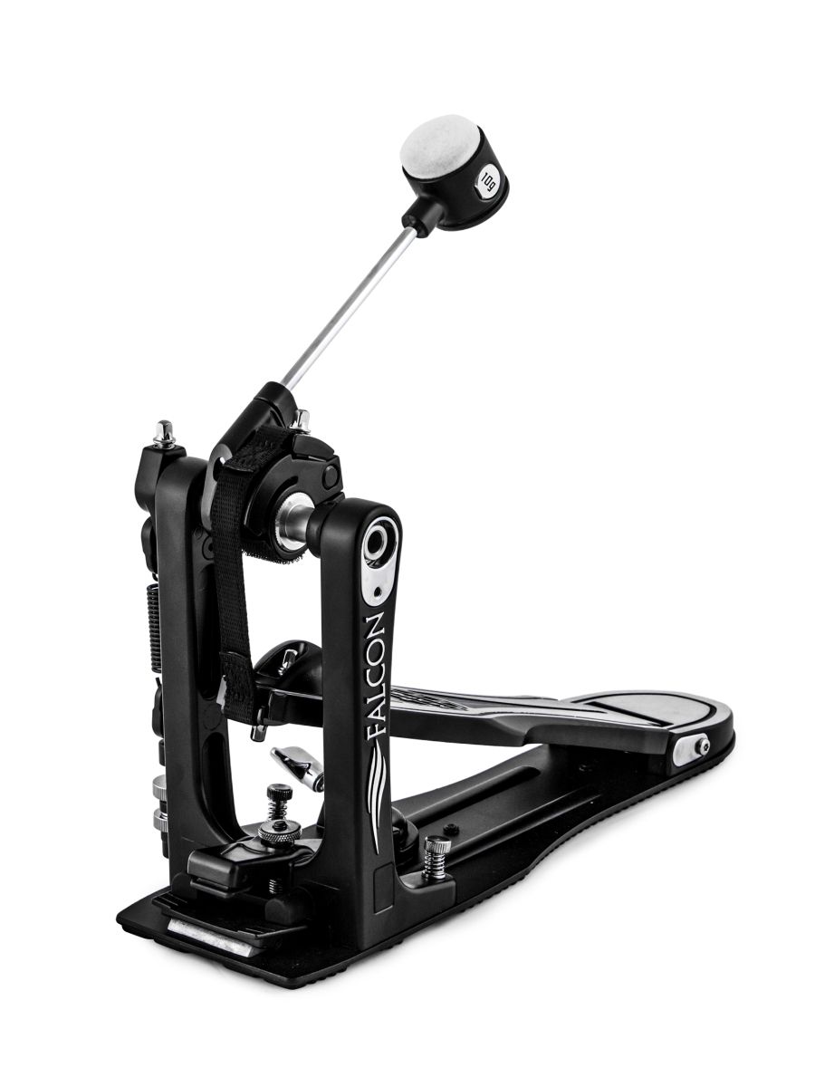 В течение двух лет специалисты отдела инновационных технологий компании MAPEX встречались с барабанщиками со всего мира, наблюдали за их игрой и спрашивали, что же является крайне важным для создания идеальной педали бас-барабана. Затем все ответы музыкантов были проанализированы, и на свет появилась великолепная новинка – педаль Falcon. Конструкция педали включает ряд особенностей: - Регулируемый упор для ноги, предотвращающий соскальзывание; - Регулировка угла наклона колотушки; - Регулировка угла наклона педали; - Сменная система привода, позволяющая переходить от цепного к ременному приводу в зависимости от вашего вкуса; - Эргономичность (основа педали Falcon занимает меньше места на полу, позволяя тем самым легко располагаться возле стойки для малого барабана и хай-хэта во время использования модели с двумя педалями); - Усовершенствованная платформа даёт ощущение более длинной основы; - Устойчивость; - Запатентованные шарниры для большей безопасности и точности всех движений.