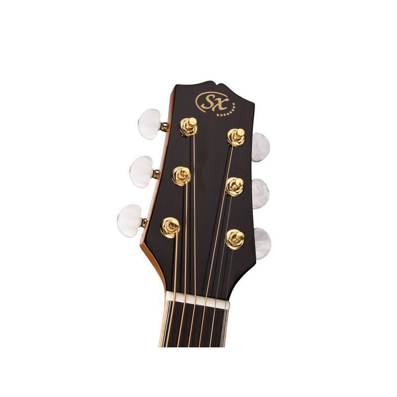 SX DG50+ Гитара акустическая, верхняя дека: цельная ель, нижняя дека и обечайка: палисандр, гриф: красное дерево, накладка грифа и нижний порожек: палисандр, колки: золотое покрытие