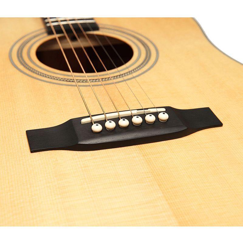 SX SD704 Гитара акустическая, верхняя дека массив ели, нижняя дека и обечайка: сапеле, гриф: окуме, накладка грифа и нижний порожек: палисандр, колки: хромированное покрытие, цвет натуральный