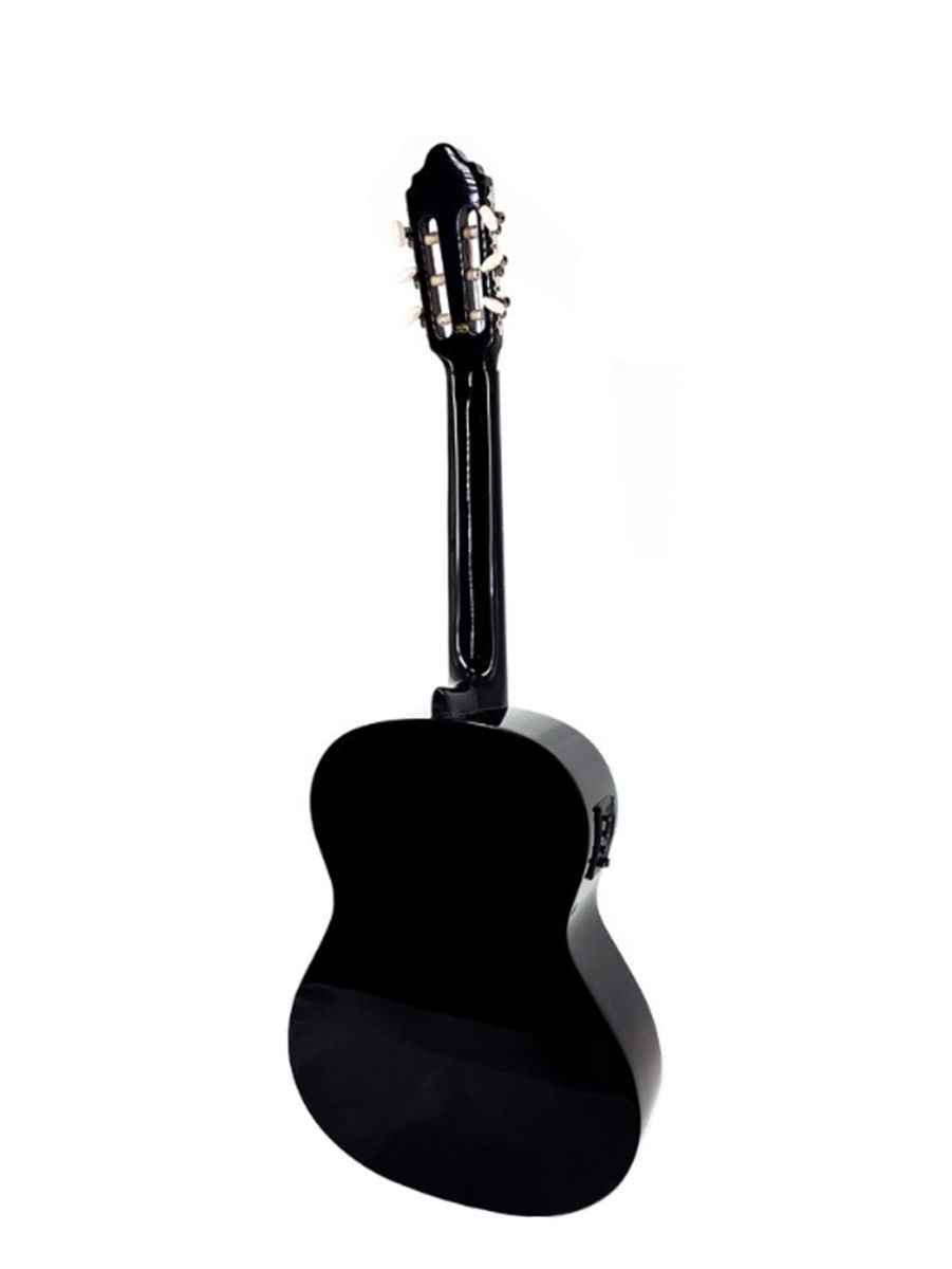 VC104EBK – это качественная и доступная по цене электроакустическая гитара от знаменитого производителя. Модель оснащена звукоснимателем с 4-полосным эквалайзером и качественным тюнером.   Корпус гитары изготовлен из липы, которая обладает усиленными резонансными особенностями. Гриф выполнен из нато, накладка из клена, нижний порожек – из махагона. Никелированные колки прекрасно держат строй. Нейлоновые струны, установленные на комфортной для игры высоте, делают гитару удобной даже для самых юных исполнителей. Покрытие черного цвета с глянцевой отделкой дарит инструменту неповторимую красоту и эффектность. VC104EBK – отличный инструмент, который можно использовать как дома, так и на сцене.