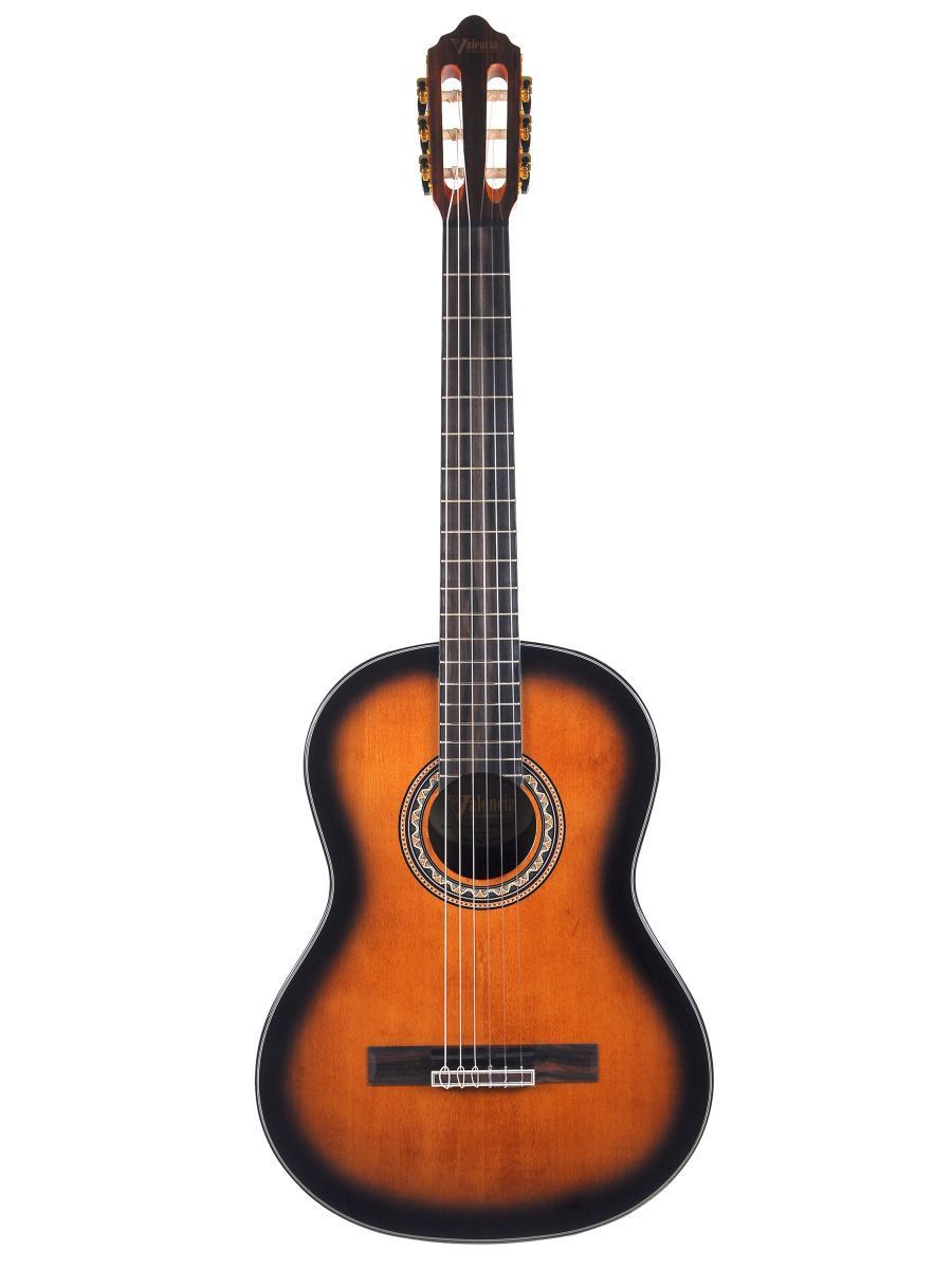 Valencia VC564BSB Гитара классическая, верхняя дека: ель, нижняя дека и обечайка: орех, гриф: махагони, накладка грифа и нижний порожек: черное дерево, цвет Brown Sunburst